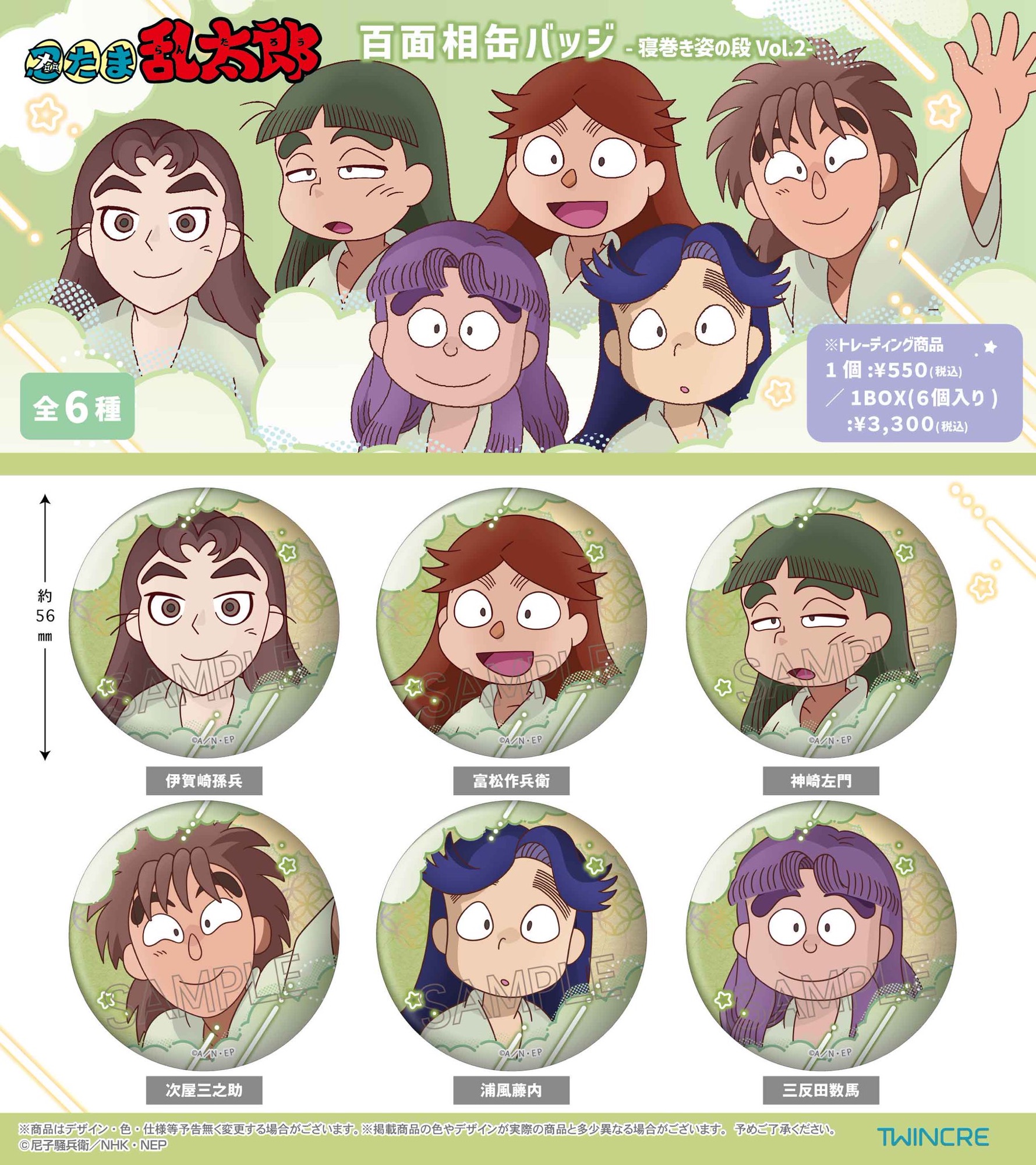 忍たま乱太郎 百面相 缶バッジ – 寝巻き姿の段 Vol. 2 – BOX